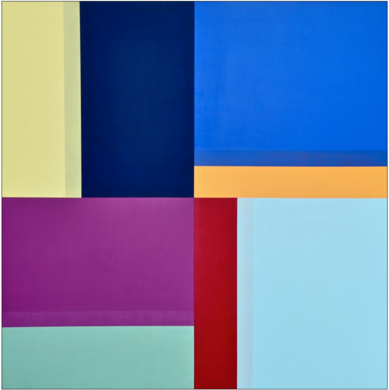 Farbkomposition Acryl hinter Plexiglas 90 x 90 2017